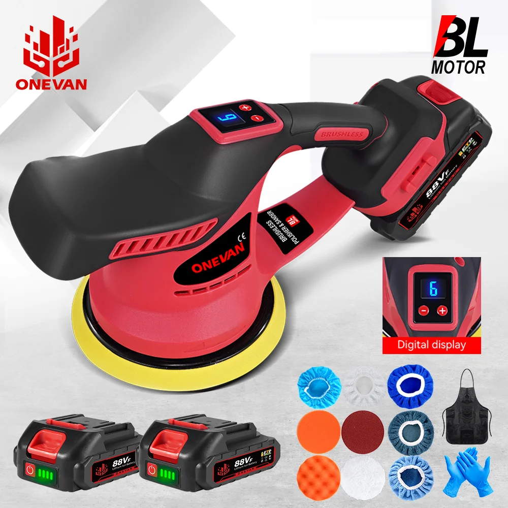 ONEVAN 8500RPM bezuhlíkový elektrický leštička 6gear akumulátorové auto leštička auto elektrický voskovací brusné nářadí pro 18v baterie špendlík