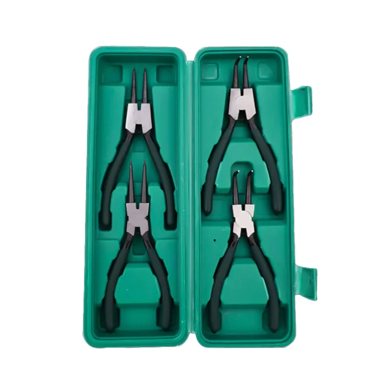 4-piece připevňovací prsten kleště sada, připevňovací prsten a jaro odstranění nástroje, vnitřní a vnější připevňovací prsten ohýbací kleště.