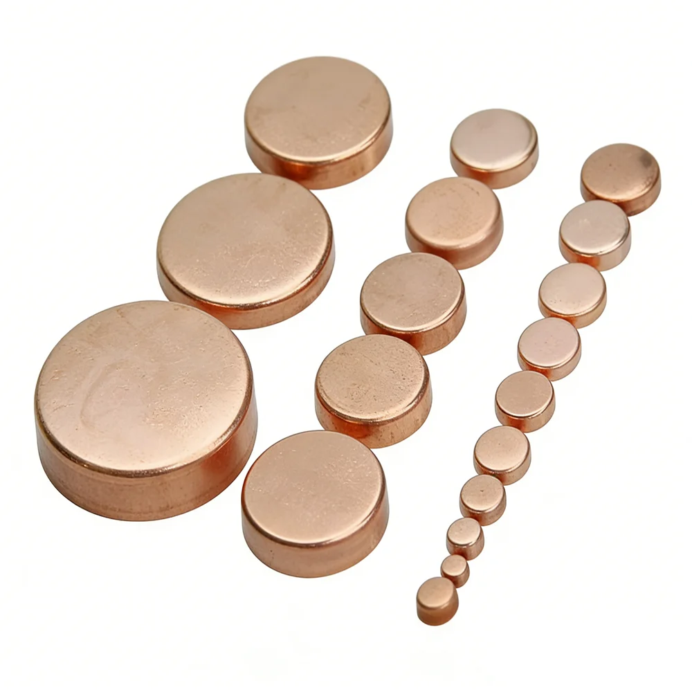 Měď konec čepice stop konec krmit dýmka šroubení instalatérské pro plyn voda mazat vnitřní prům 6.53-80mm tloušt'ka 0.8-2.0mm