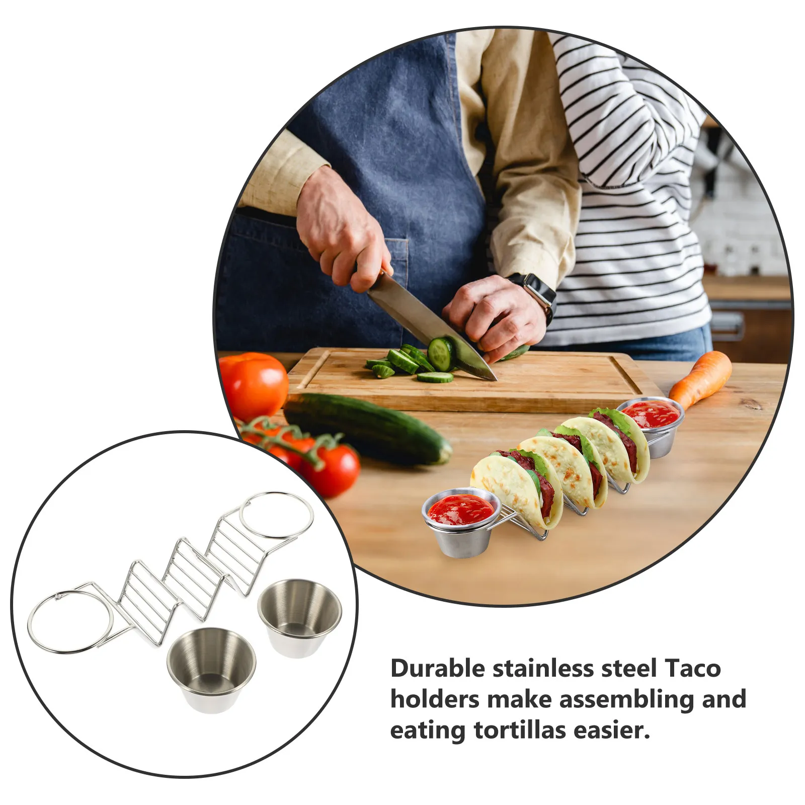 Těžký celní poplatek nerez ocel tacos držák pro tortillas burritos fajitas maintains vzhled během spojování dvojitý omáčka kelímky ergonomická