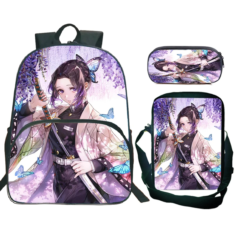 Nový 3ks sada běs přemožitelka shinobu kocho batoh mochila děti brašna chlapci dívčí kreslený batoh na knihy kimetsu ne yaiba batoh
