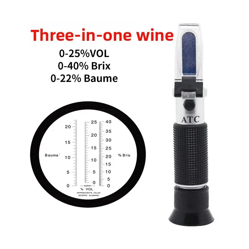 Přenosné 3-in-1 víno refractometer: opatření 0-25% alhokol, 0-40% cukr & 0-22% brix pro winemaking, alkoholové kvašení, a domácí víno test