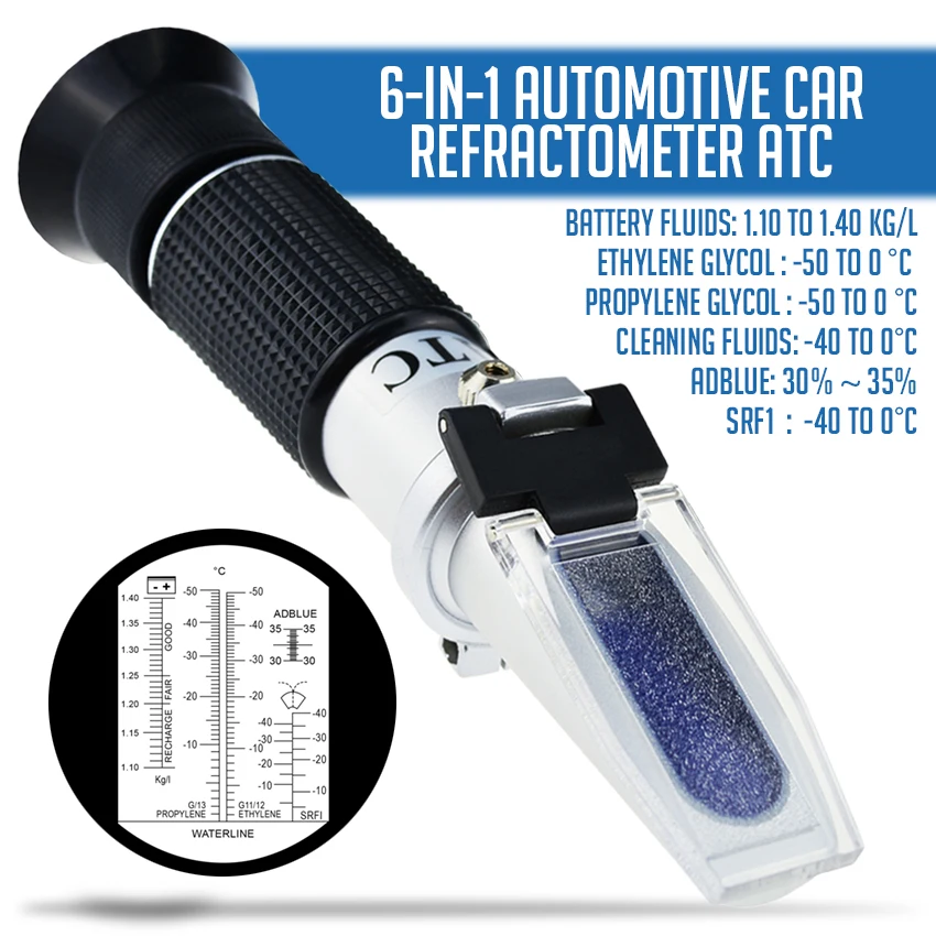 Odborný multi-fluid digitální refraktometr pro coolant, štamprle, baterie kyselina, adblue, windshield destička tekoucí s ATC