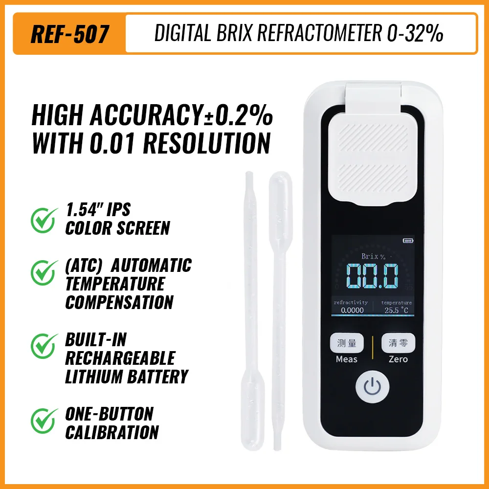 Odborný digitální refraktometr 0-32% brix, temp & RI měřič hd barva obrazovka dobíjecí alkoholové kvašení, winemaking, jídlo průmysl
