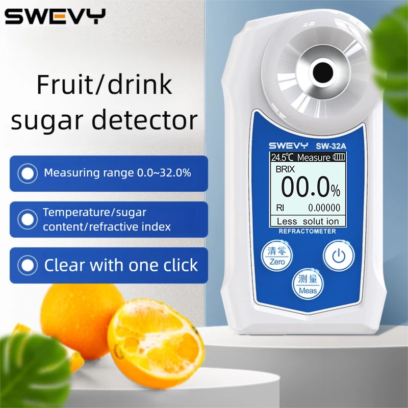 Swevy digitální refraktometr 0-32% brix měřič ip67 džus nápoj cukr náplň tester (batteries ne- included)