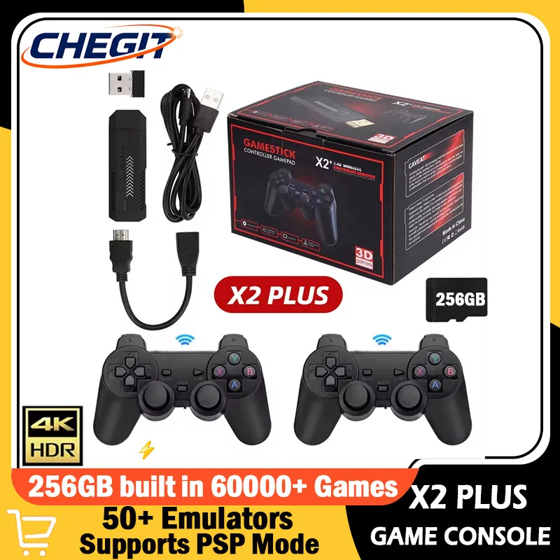X2 plus klasický video hra konzole 256 GB herní tyčinka 4K hd bezdrátový regulátor 60000+games 50+ emulators pro PSP/PS1/GBA