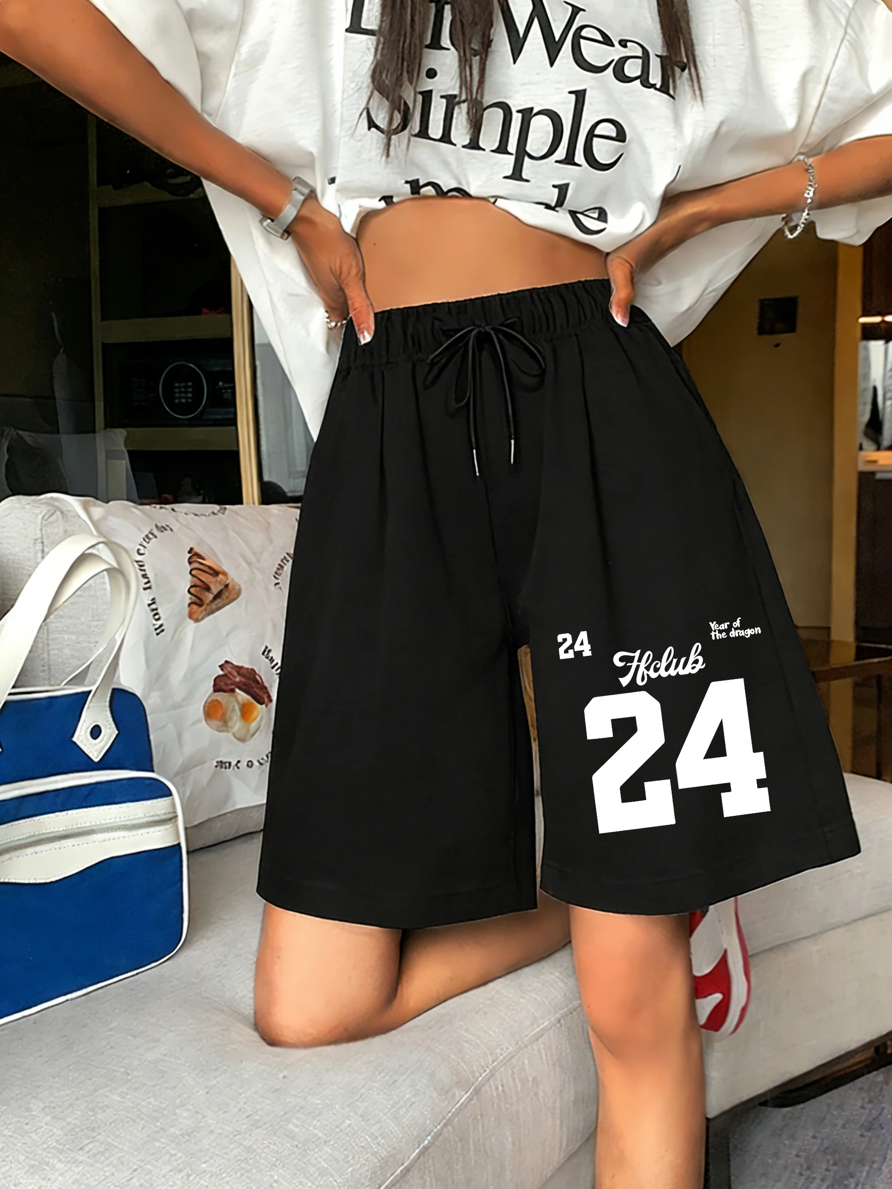 Rok z drak cifra 24 tisk dámská šortky léto pružnost kalhot stahovací fitka kalhoty široký noha pohodlné pouliční oblečení