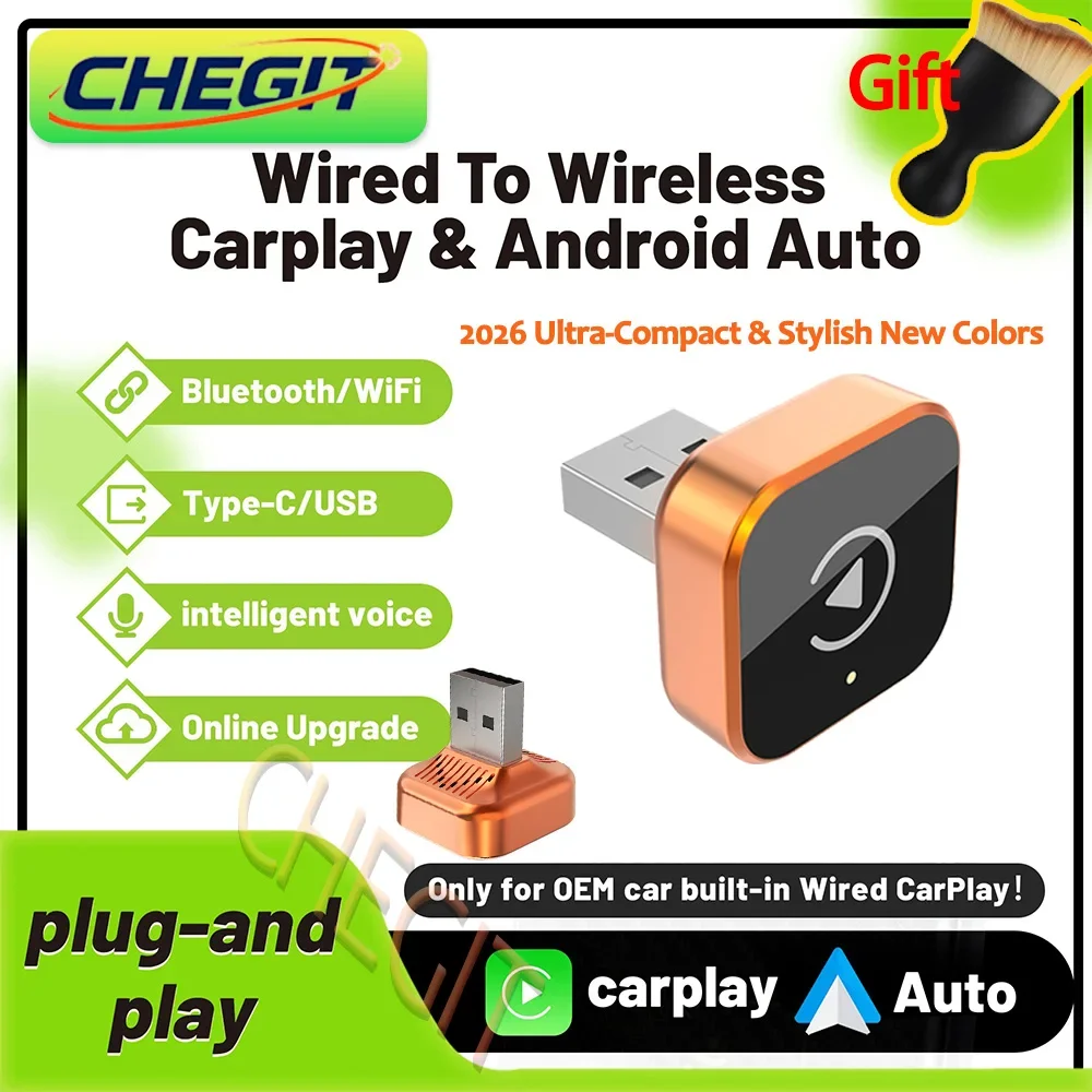 2026 2v1 bezdrátový Carplay adaptér bezdrátový Android auto dongle pro oem drátová Carplay vozidel auto rádio kolíček a divadelní hra Bluetooth