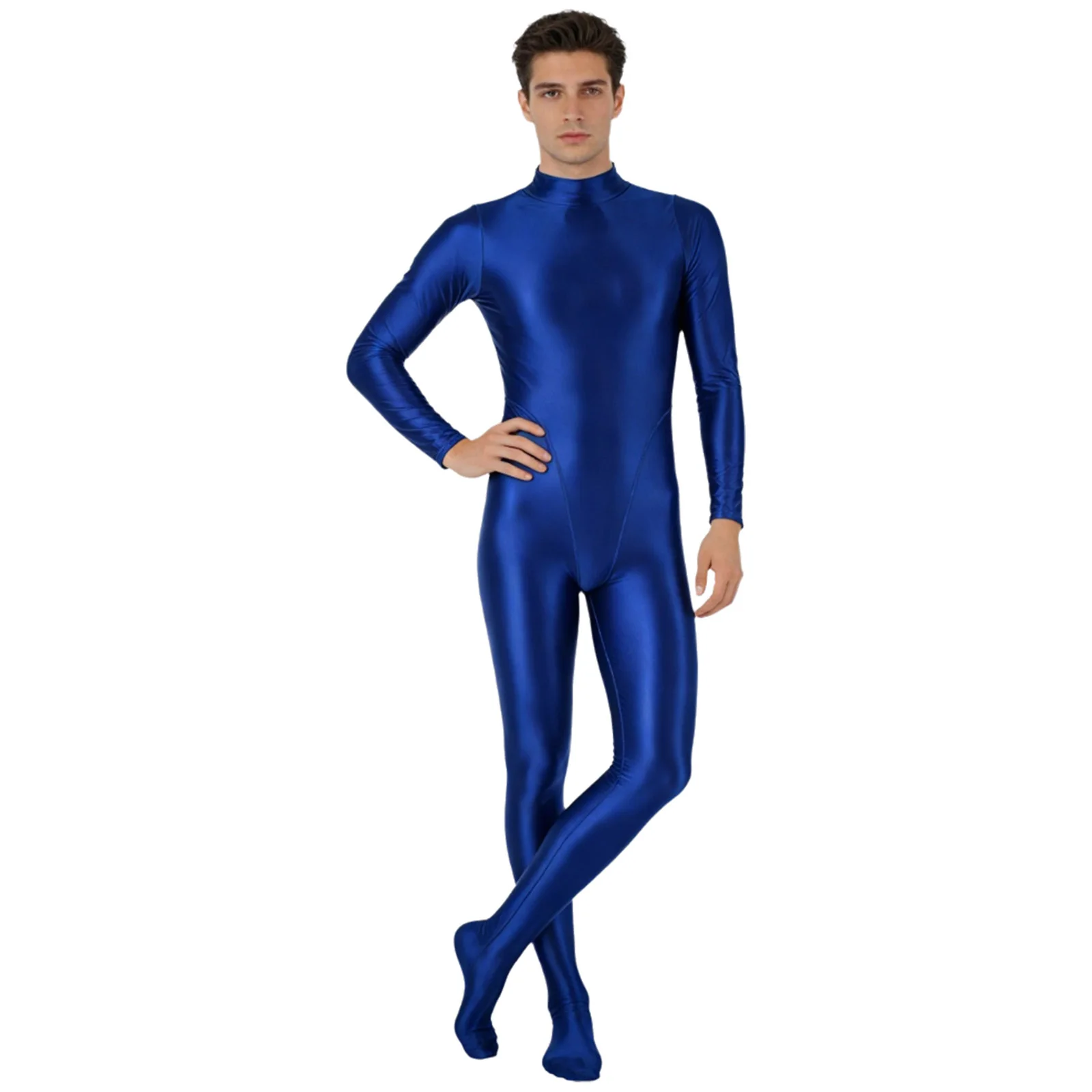 Pánská leskle jeden kusu plavky mazat lesklý dlouhé rukáv zpět na zip liják dávat pozor neopren gymnastika unitrad footed trikot jumpsuits