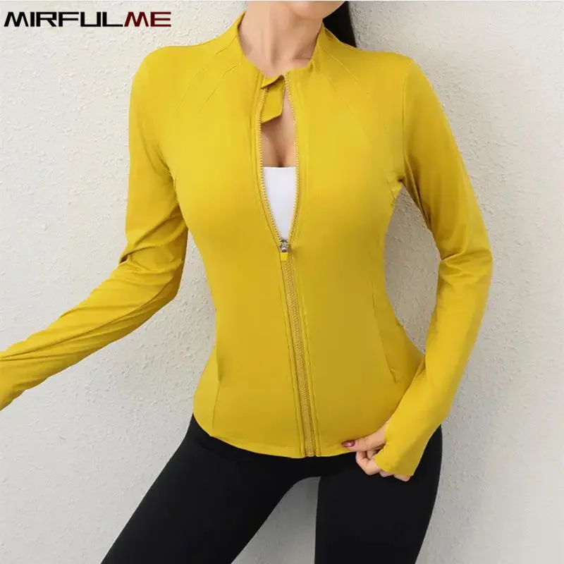 Ženy sport bundy na zip joga oblečení štíhlý cvičení bunda dlouhé rukávy běžecký svrchní rychlý suchý fitka fitness nejvyšší kabát femme