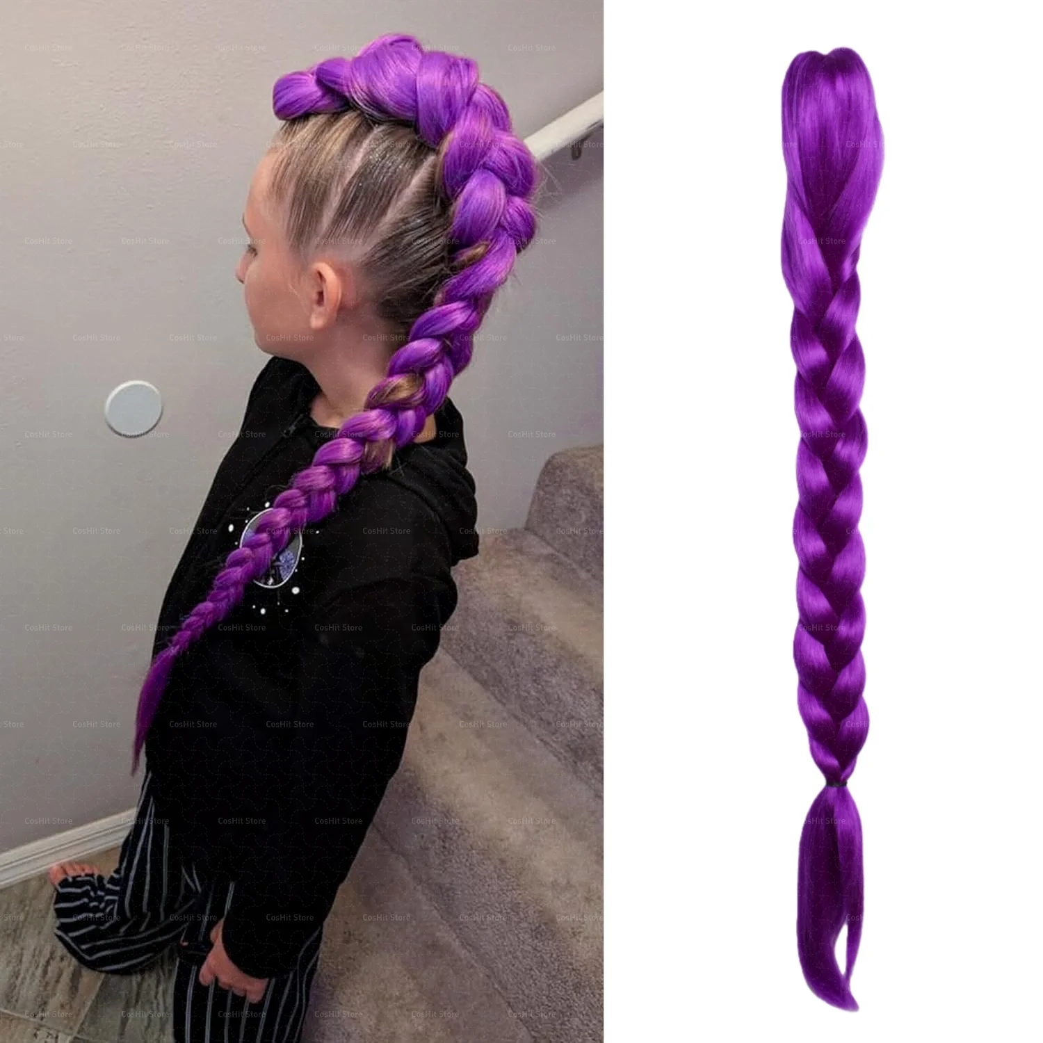RUMI syntetická dlouhé přímo culík prodlužování s guma pás DIY opletené culík fialový vlasy příslušenství pro halloween