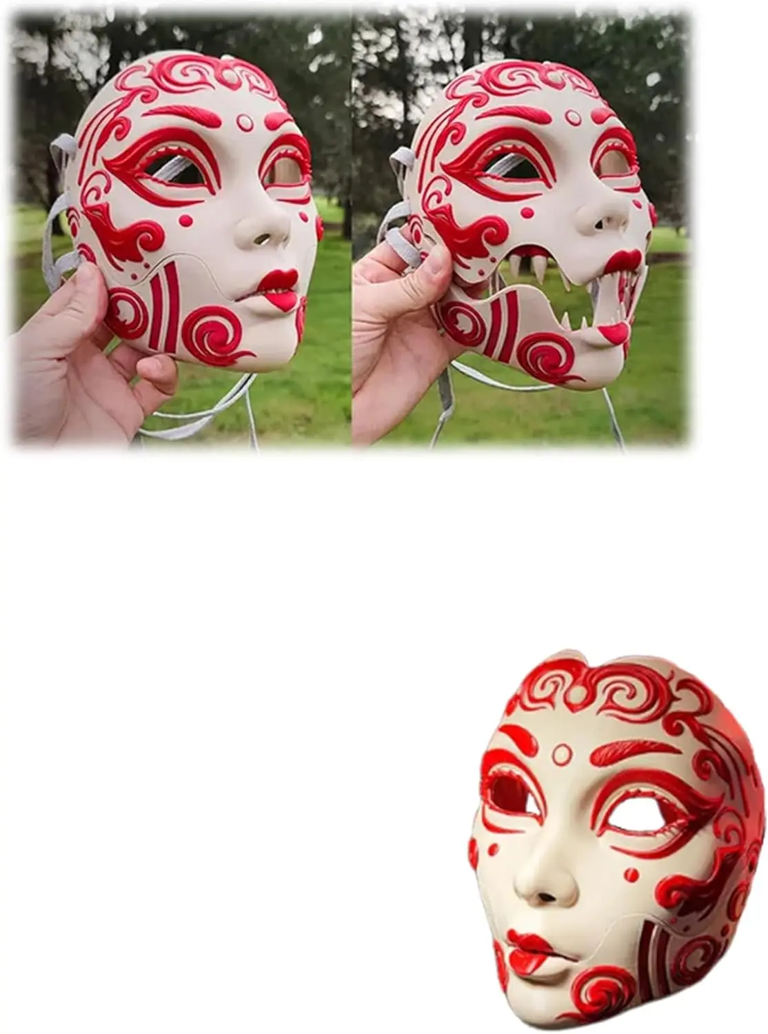 Articulated pohyblivé čelist gejša maska - realistický japonský líčení halloween kostým maska pro muži a ženy