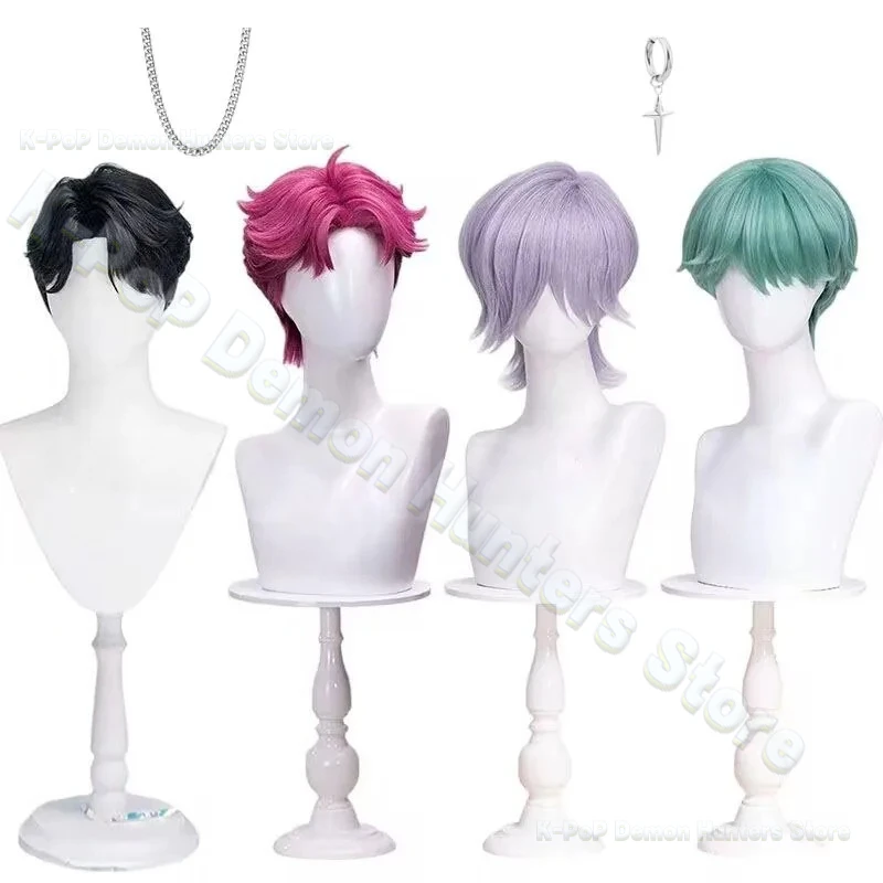 Kpop běs hunters paruka saja chlapci jinu děťátko abby záhada romantika paruka muži krátký vlasy jinu cosplais řetízek náušnice volný paruka čepice