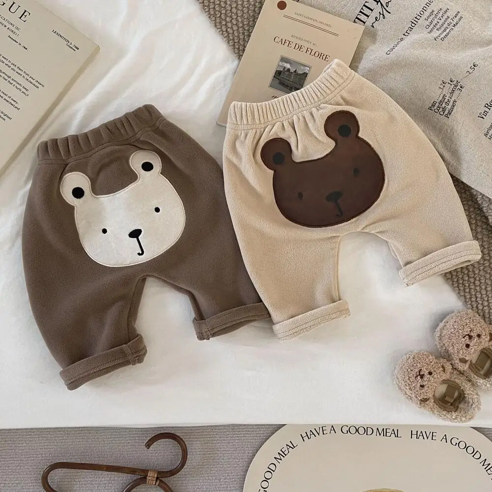 Děťátko zima kalhot plyš medvěd tisk hustý teplý kalhoty korejské styl harém kalhoty pro kojenec batole chlapci dívčí ležérní oblečení