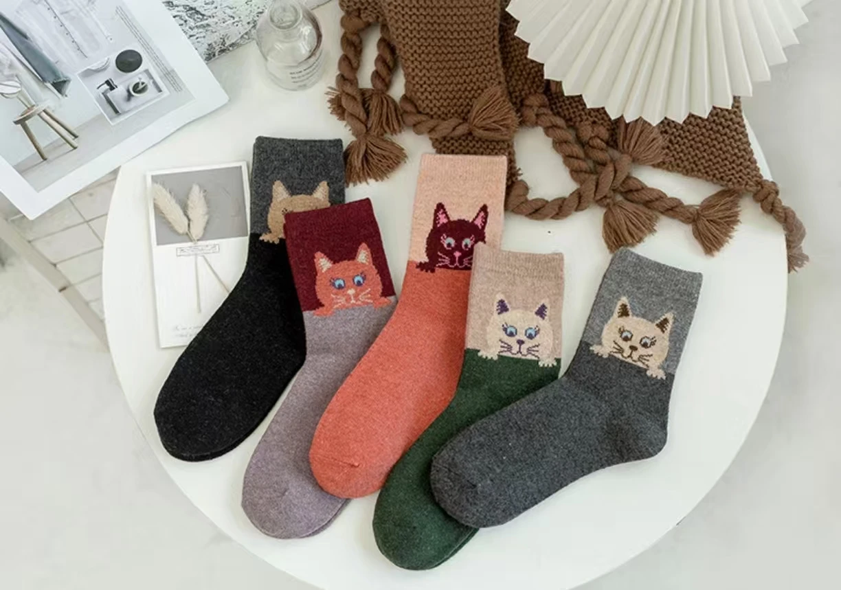 5barvy páry z roztomilá kocour teplý ponožky, zima teplý ponožky, unisex ponožky, manželé ponožky, dámská dárky