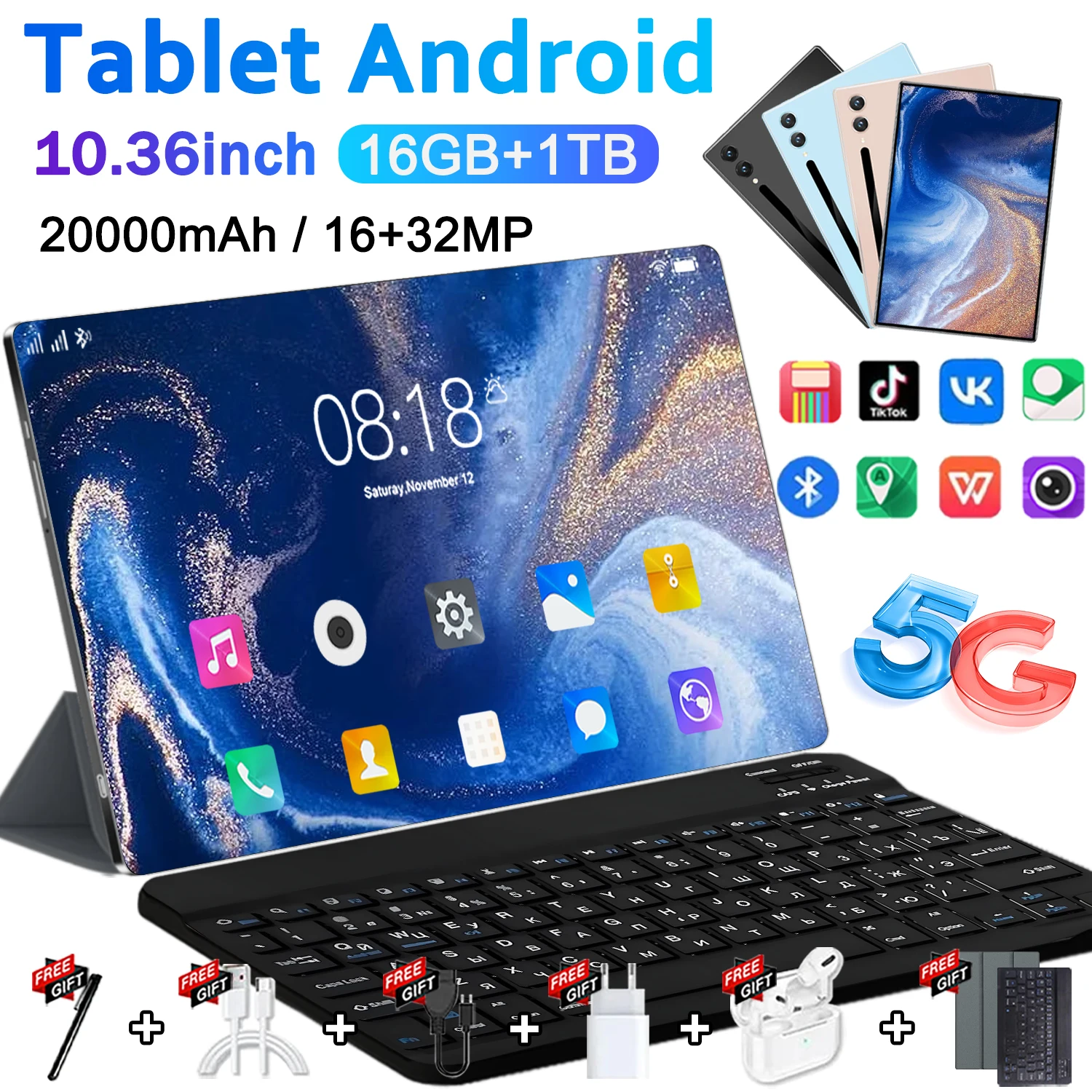 Android tablet velký hd obrazovka 10.36-inch 16gb beran 1TB ROM 20000mah Android 13.0 14 jádra tablety PC type-c dvojí kamera 16MP+32MP dvojí sim karta sit' WIFI Bluetooth GPS WPS úřad dárky