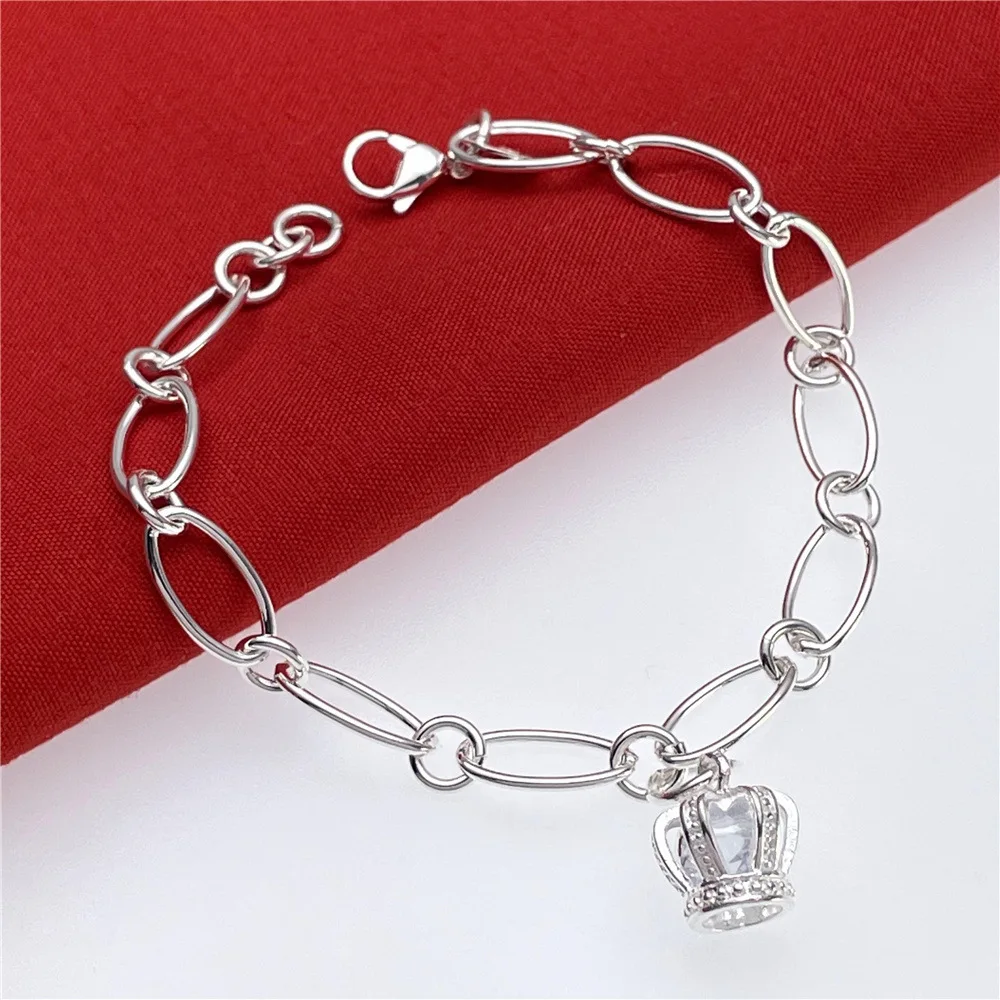 Nový oblíbený 925 mincovní stříbro nádherný koruna broušené sklo náramek pro ženy móda nika šperků svatební příslušenství večírek dárky