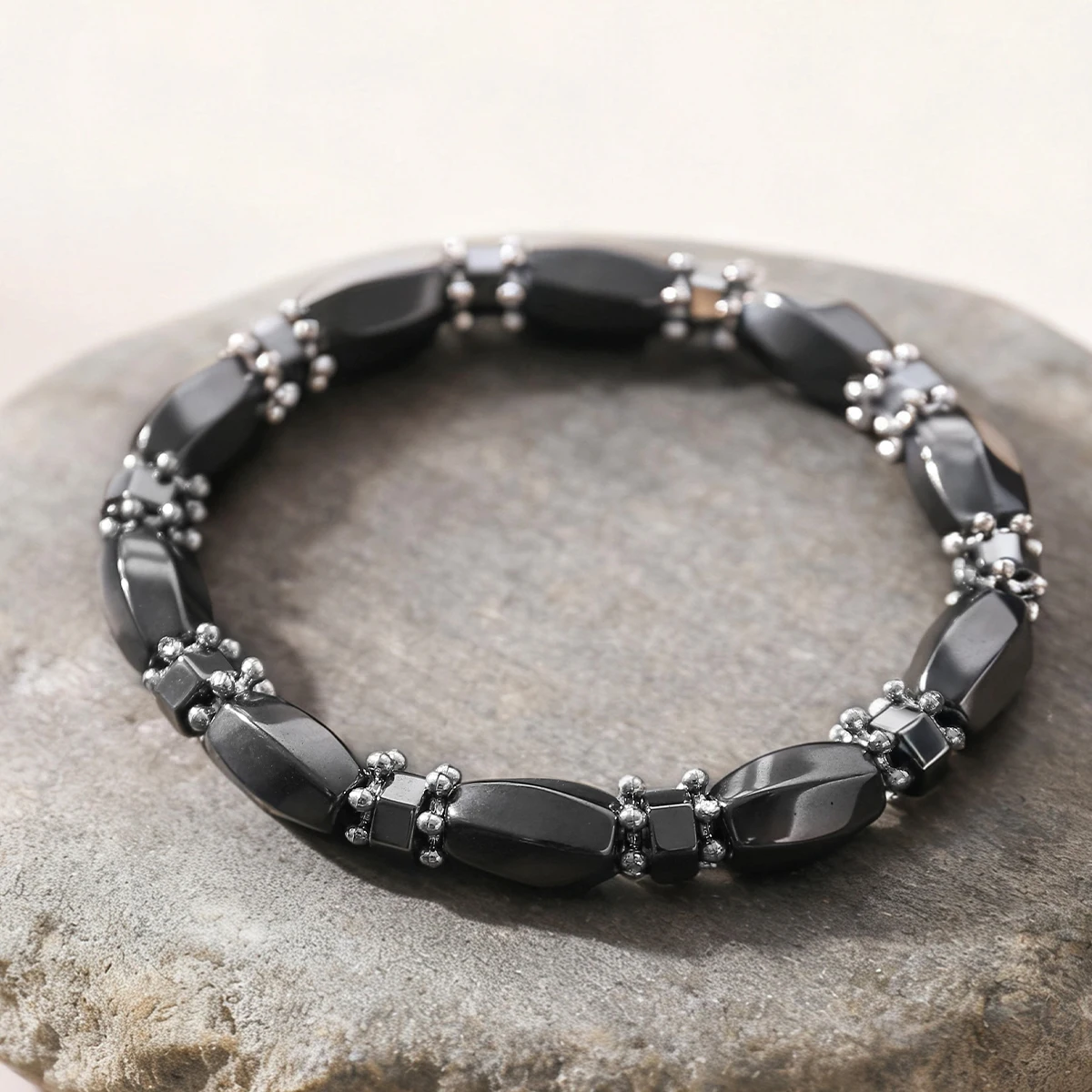 Pánské hematit náramek matná černá elastická nastavitelný náramek módní móda šperků pro muži dar příslušenství