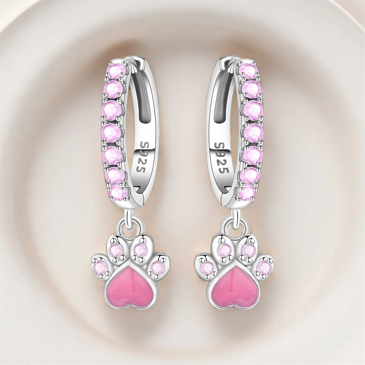 PANPOKI 925 mincovní stříbro růžová živočich packa tisk kapat náušnice ženy náušnice móda večírek originální šperků jemný dárky