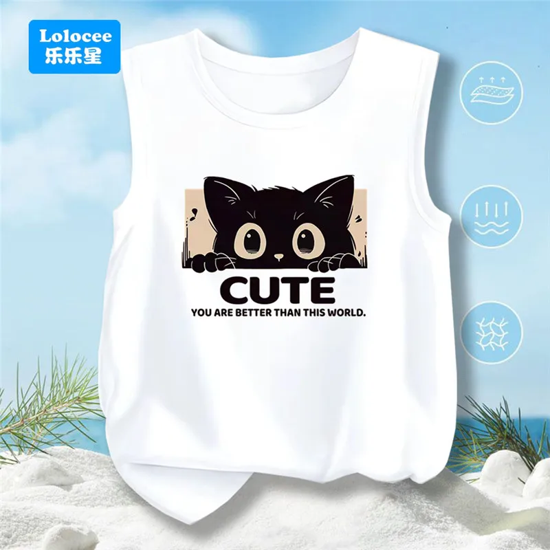Děti roztomilá černá kocour tisk komora nejvyšší boy' léto spodky děti bavlna tílko málo chlapci sportovní tees bez rukávů tričko MKA1