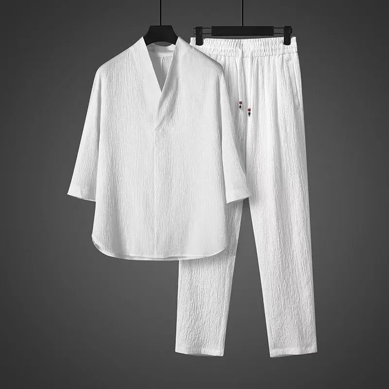 Čínské starobylý oblečení sada muž hroutit se prádlo spona kung fu košile orientální retro nejvyšší kalhot taie chi prodyšné uniformy hanfu