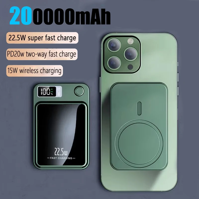 200000 mAh magnetický bezdrátový rychle nabíjení energie banka 22.5w obousměrný rychle nabíjení energie banka hubený namyšlený a přenosné