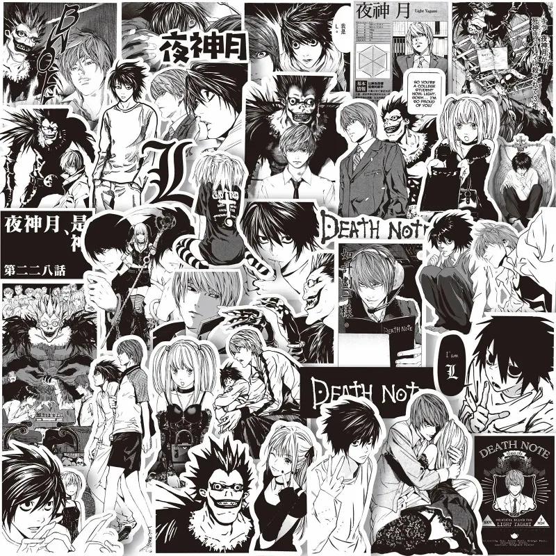 65PCS anime mrtvý nota nálepky černá bílá obtisky zápisníku brašnářské notebook jízdní kolo kufr auto graffiti nálepka dekorace hračka