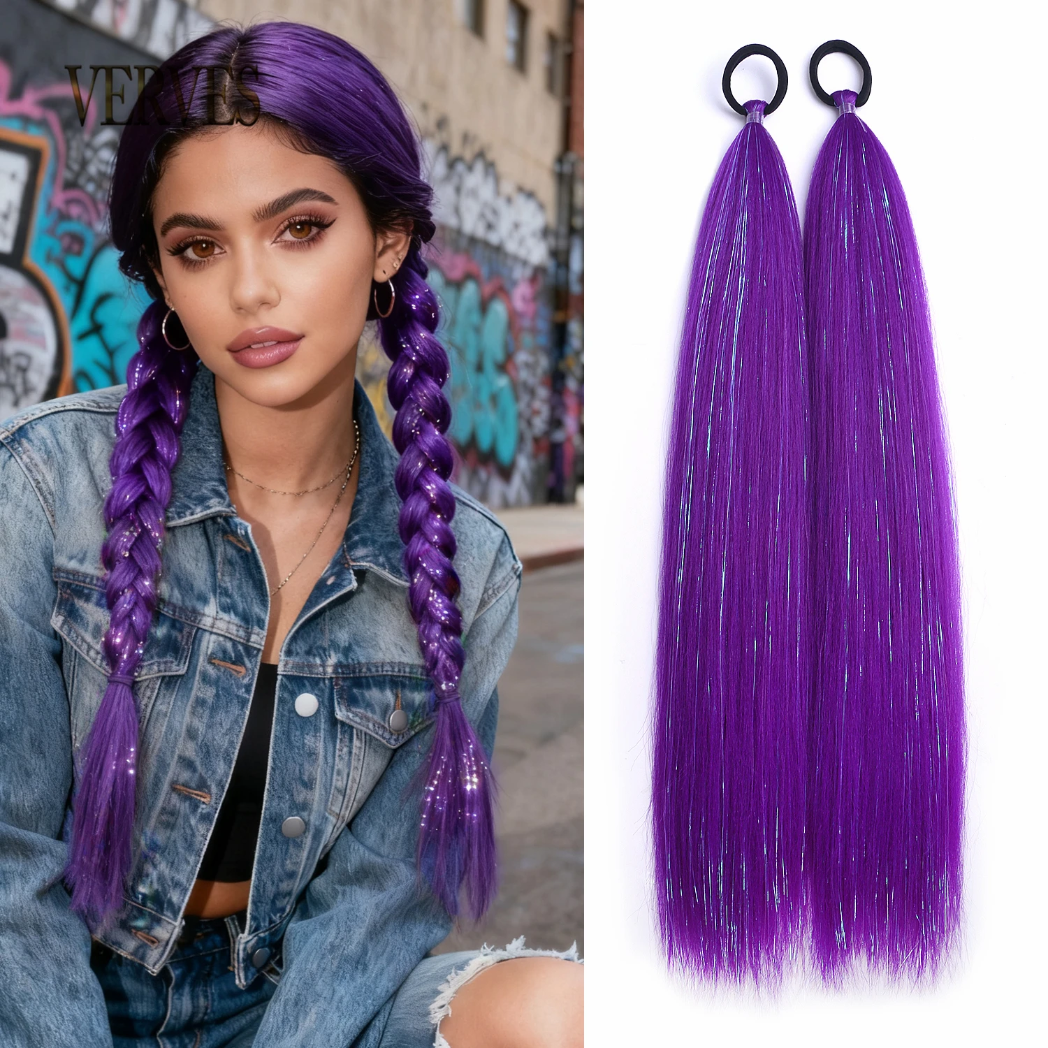 Pozlátko culík vlasy prodlužování pro ženy 2se kousky opletené syntetická vlasy ponytails s pozlátko opletené design fialový červená růžová