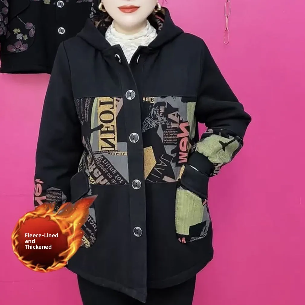 Podzim zima nový sle fce lemované thiened volné retro barva blo ležérní versatile máma oblečení bavlna jaet pro ženy