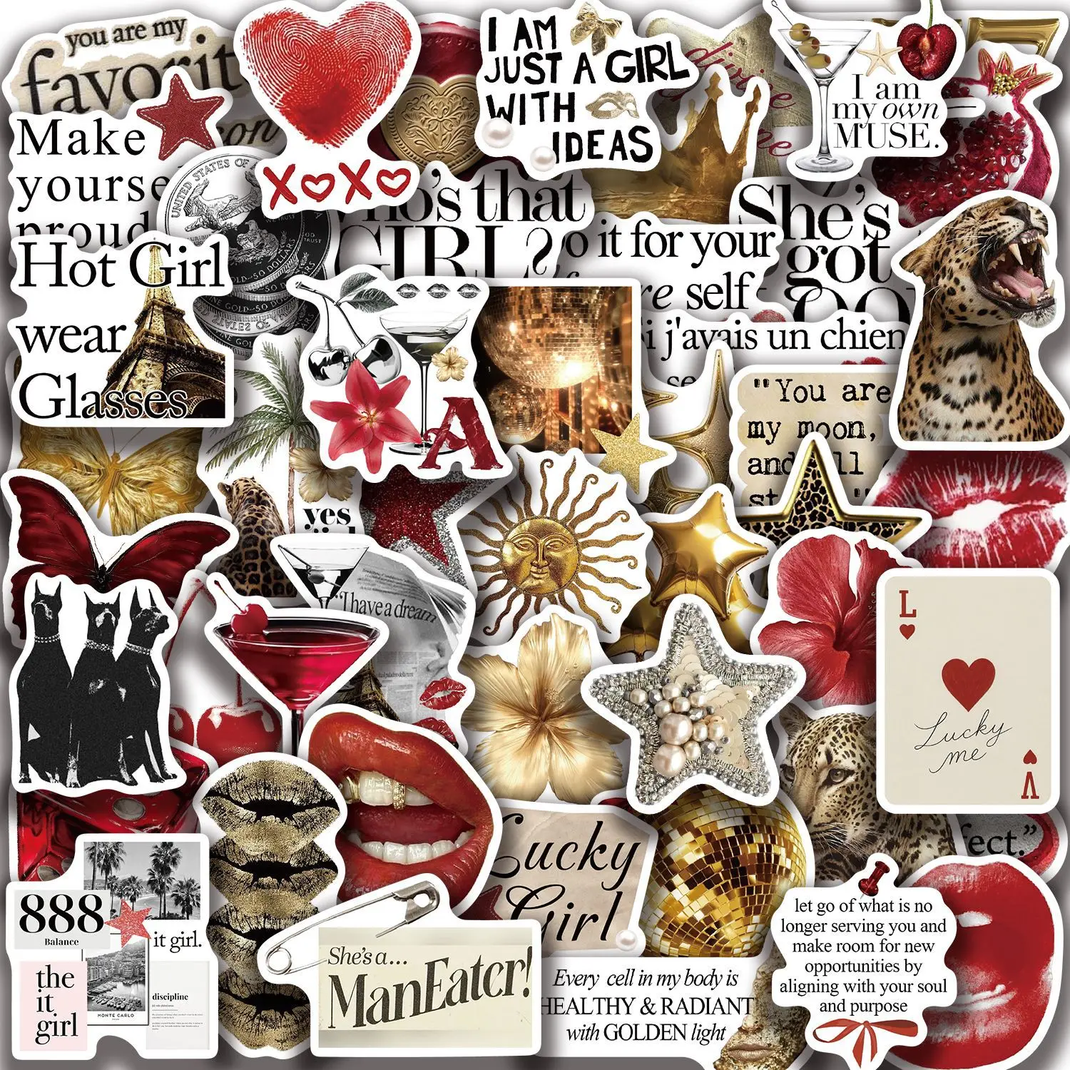 50/100PCS kreslený zlatý červená nálepky maloval graffiti handbooks pro telefon notebooky voda kelímky zápisníky dekorační nálepky