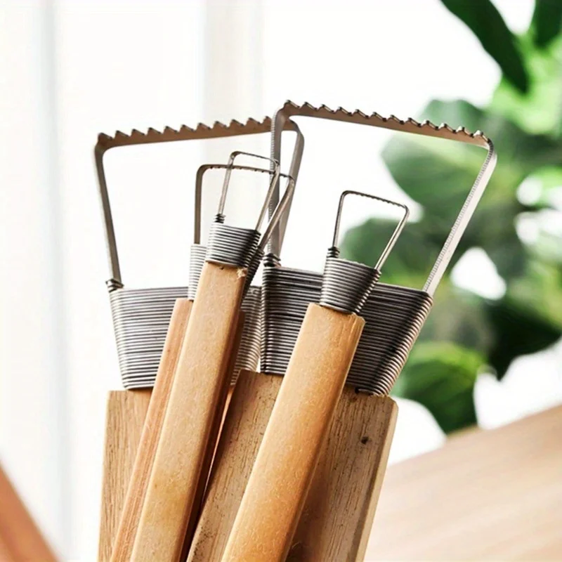 1ks keramika hlína škrabka nářadí ozubený dokončovací nářadí s textura zprostředkovat sochařské modelling hlína s bambus madlo