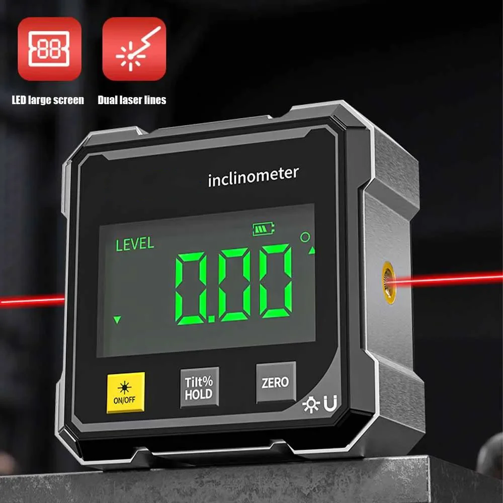 Dvojí laser přesný digitální inclinometer|4-side magneticbacklit displej pro vysoce přesný úhel naklonění měření pro dřevoobráběcí