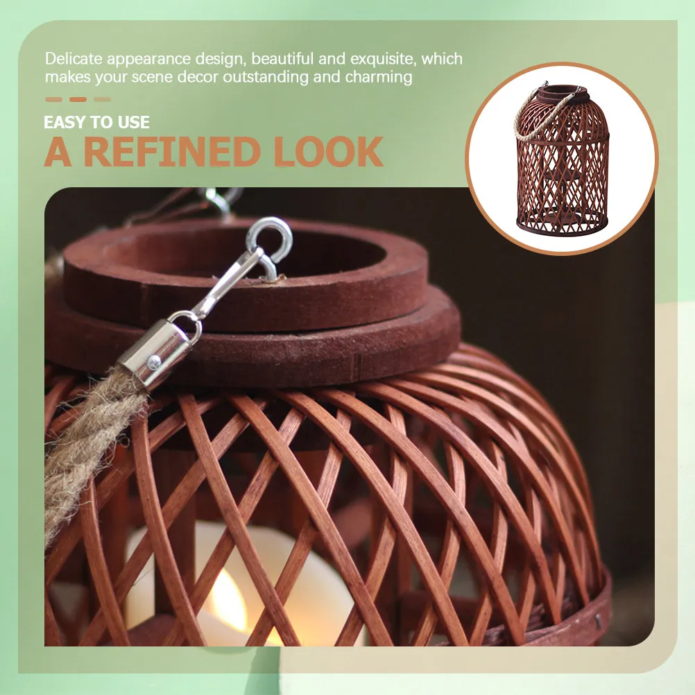 Bambus držák dutý závěsný lanterna pro domácí sad svatební dekorace ratanové přívěsek lampa stín