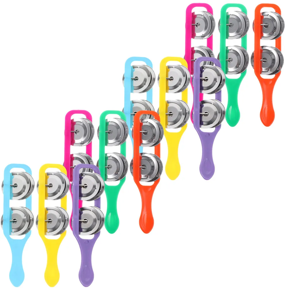 12ks hudební tambourine kapesní příklepová nástroje večírek představení pás ruka zvon kapesní tambourines
