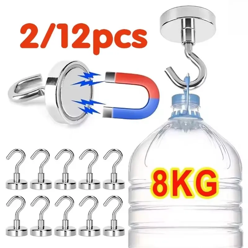 2/4/8/10/12pcs super silná neodym sytý magnetický háčků kov magnetem s zahnutá hák ramínko pro závěsný, chladnička, zeď, klíč