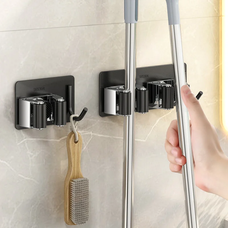 Samolepící no-drill mop a chundelka holderstainless ocel háčků pro kuchyň klozet koupelna aranžérství úložný rozluštění