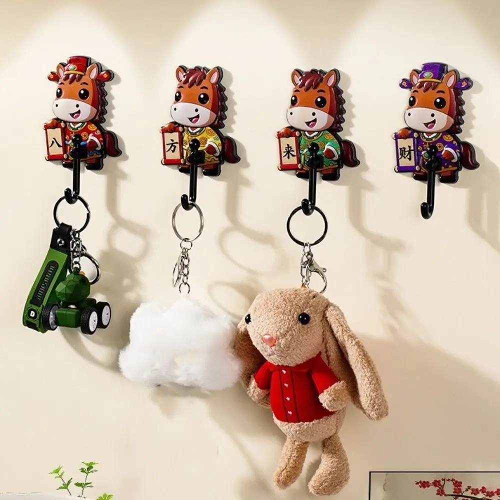 8 kousky plastový kreslený kůň háčků Čínské styl blessing slov zeď montuje hák dekorační vodotěsný klíč ramínka