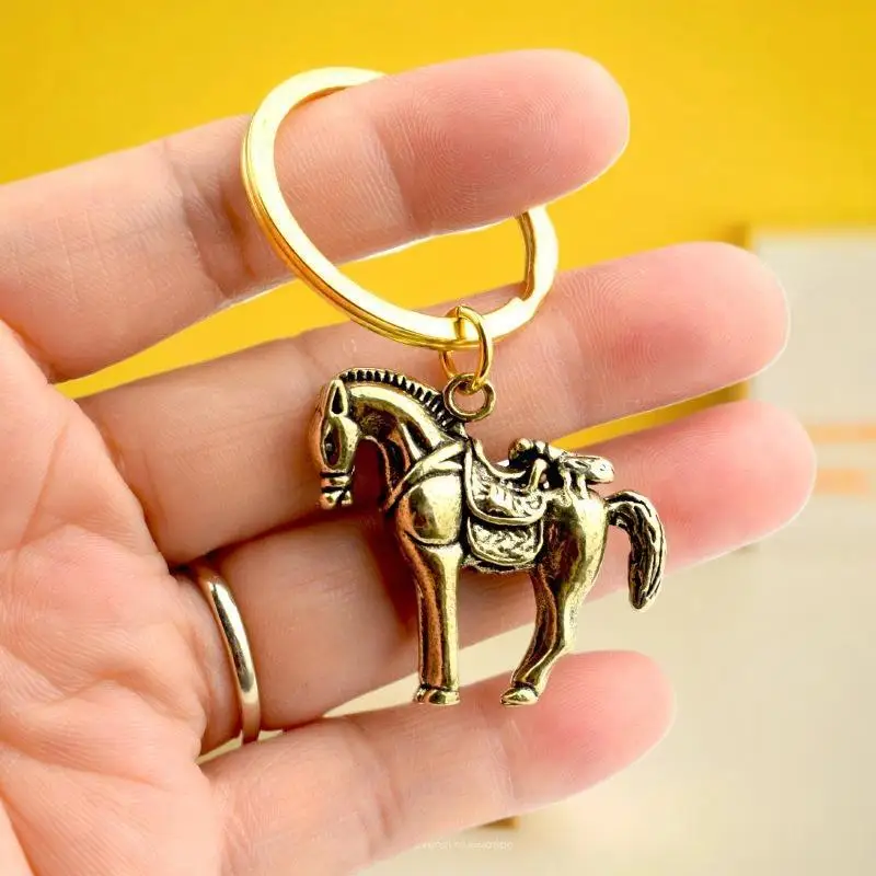 1ks mosaz zvěrokruh kůň klíčenka přívěsek kreativní létat auto příslušenství šťastný vybojovat štěstěna horseback design