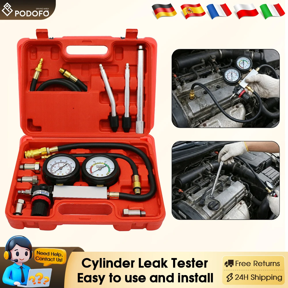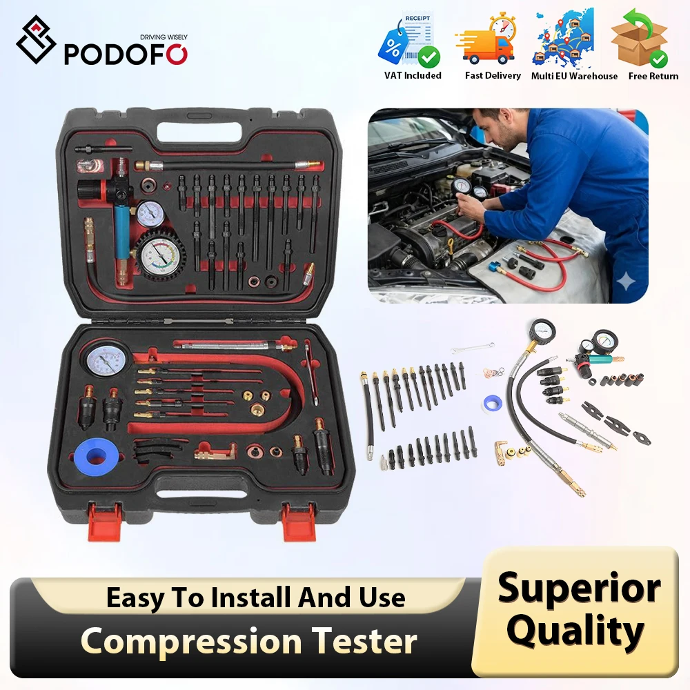 Podofo 46pcs komprese tester měrný tlak ztráta tester motor tester pro testování hdi tdci čerpadlo tryska motorová nafta benzínové motorů
