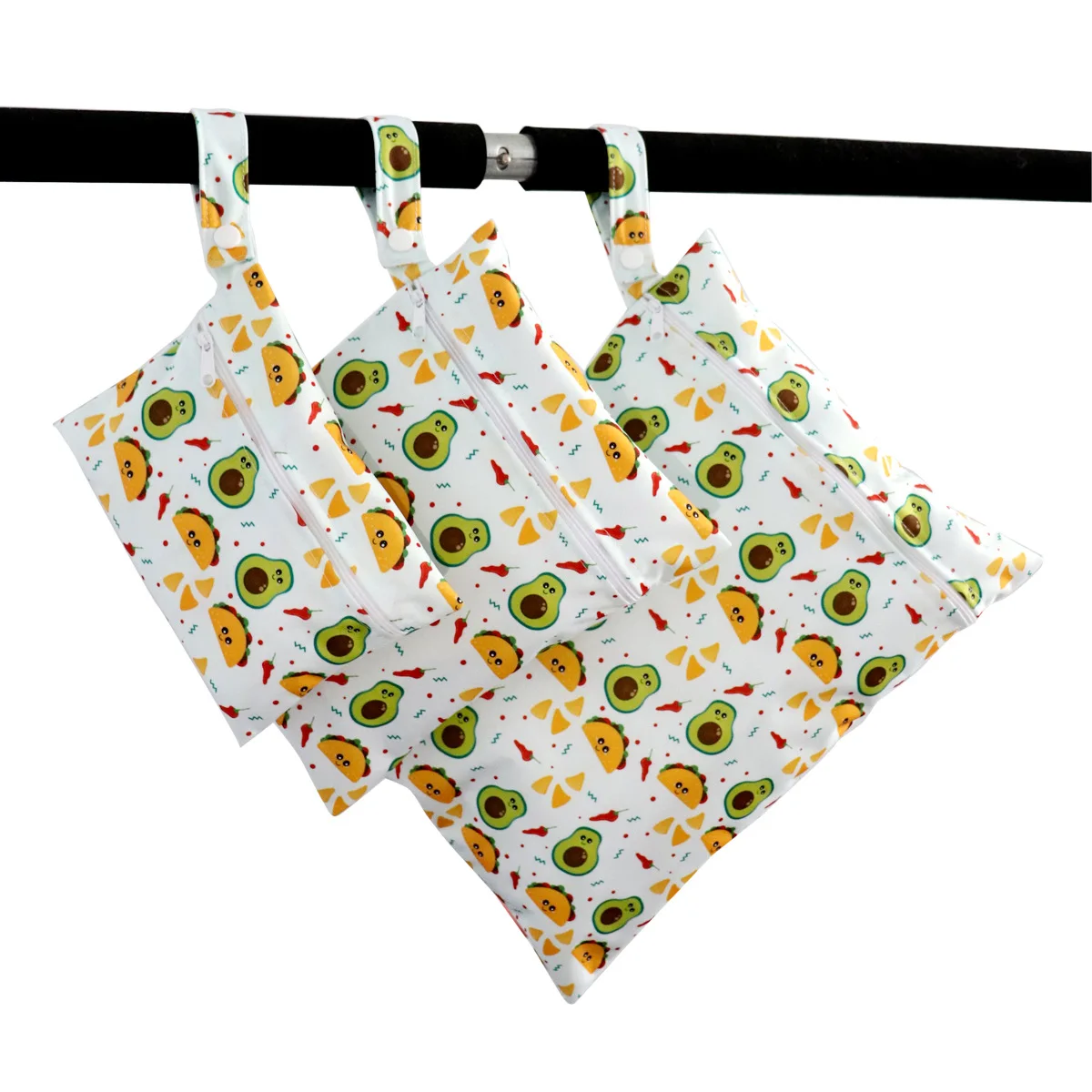 Happyflute 3ks sada tisk znovu použitelný plena mokrý brašna na zip kapsa cestovní úložný brašna multi-scenario použít velikostech malý střední velký