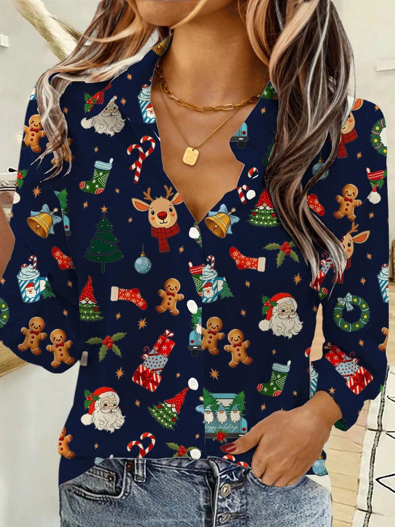 Dámská ležérní jednoduchý vánoce komponent potištěné s dlouhým rukávem košile vhodný pro podzim a zima vánoce večírek košile