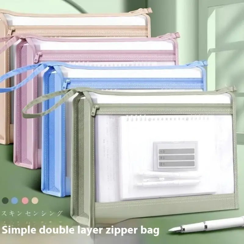 Velký schopnost akta brašna vodorovný styl l-shaped papírnictví úložný brašna otevření pletivo vodotěsný akta složka škola zásoby