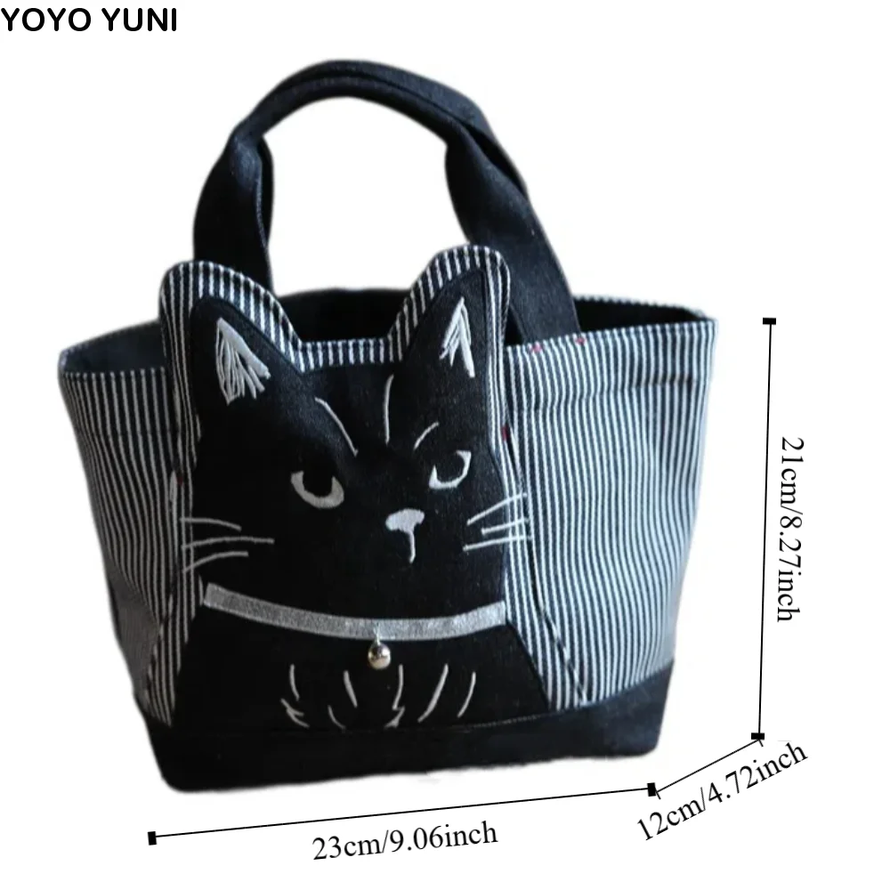 Přenosné kreslený top-handle tutoring brašna výšivka nákup kocour vláčet kabelky úložný velký schopnost plátna škola brašna ženské