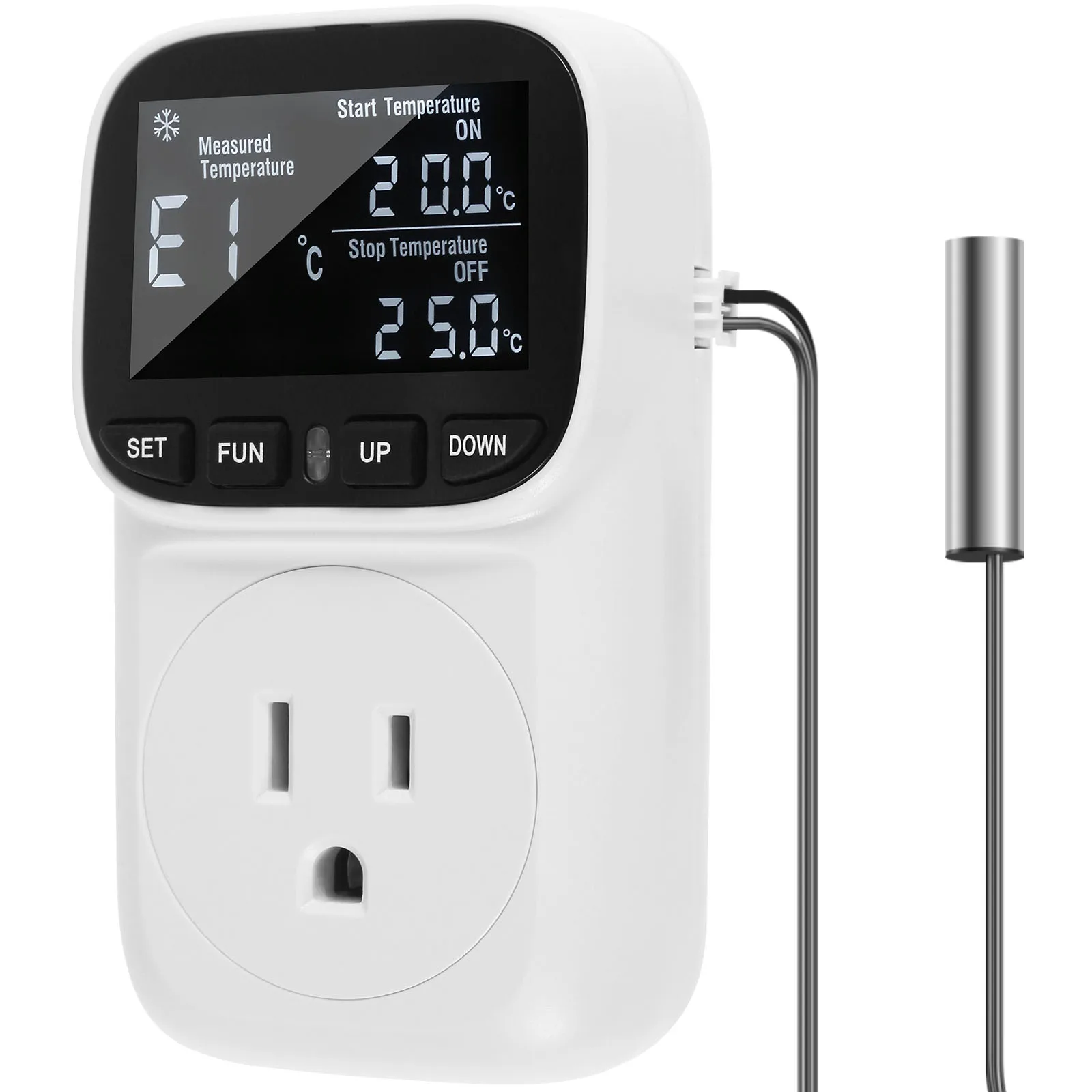 Digitální EU kolíček teplota regulátor nástrčkový vývod termostat s časovač senzor sonda ohřev chladící spínač 16A podsvícení