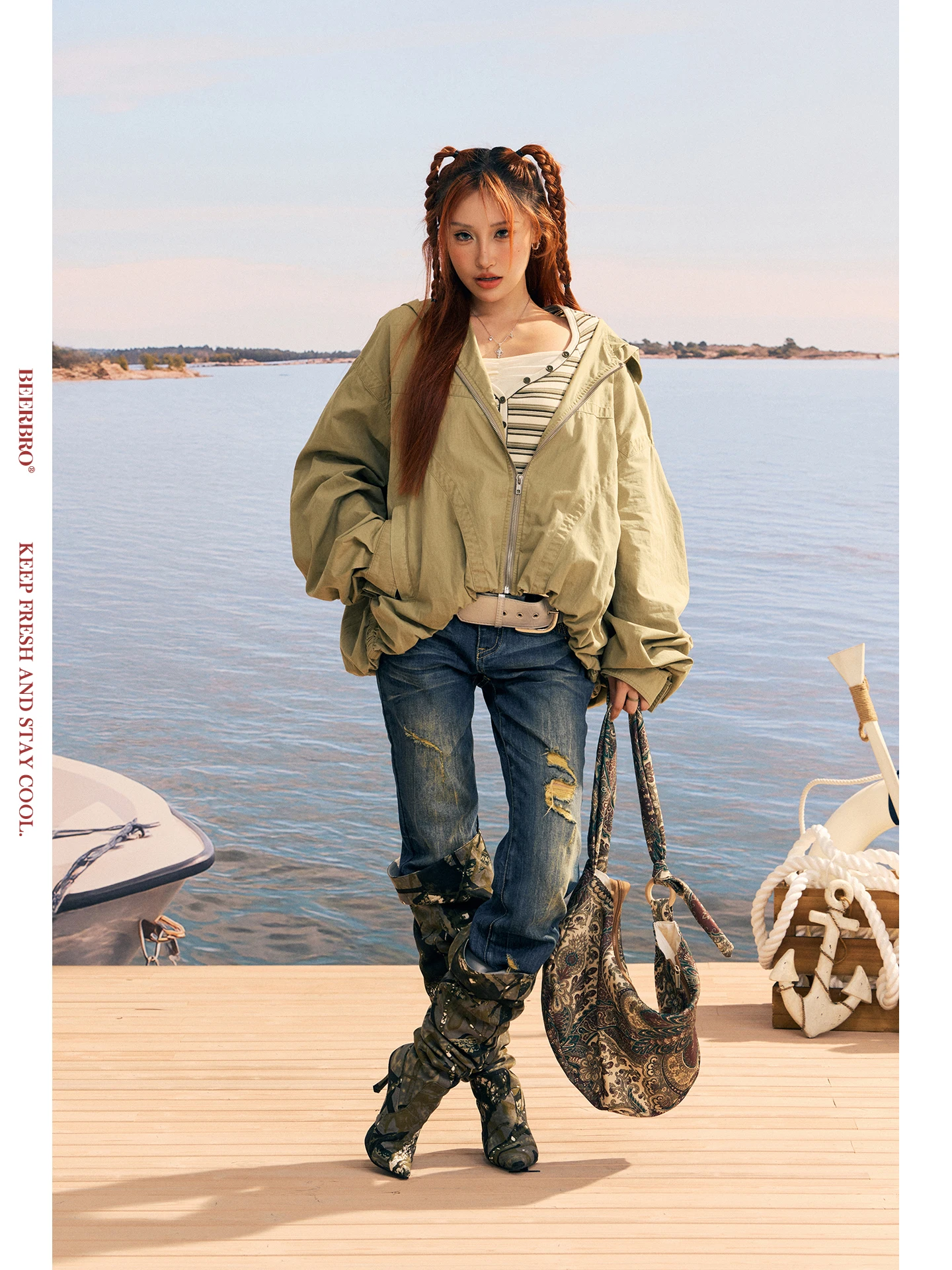 Ulice sle přehoz mikina workwear inspiroval jaet volné odpovídat pravidelný délka ne odnímatelné kapuce léto 2025 dámská faion