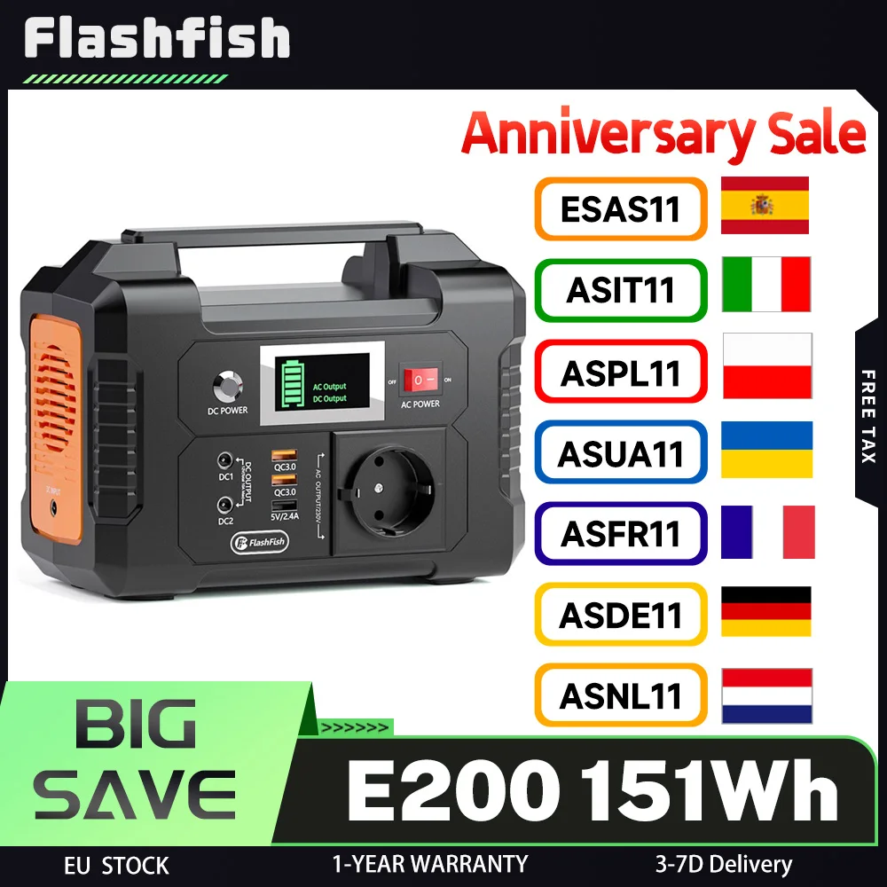 Flashfish E200 přenosné energie nádraží, 200w 151wh lifepo4 baterie, modifikovaná sinus vlna, AC/ DC/ USB výstup, trojnásobný dobíjecí