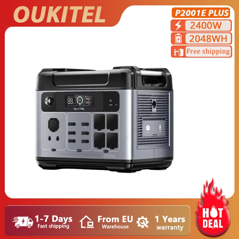 Oukitel P2001E PLUS 2400W přenosné energie 2048wh lifepo4 baterie nádraží solární vyvíječ domácí záloha, outdoorové kemping mobilní energie