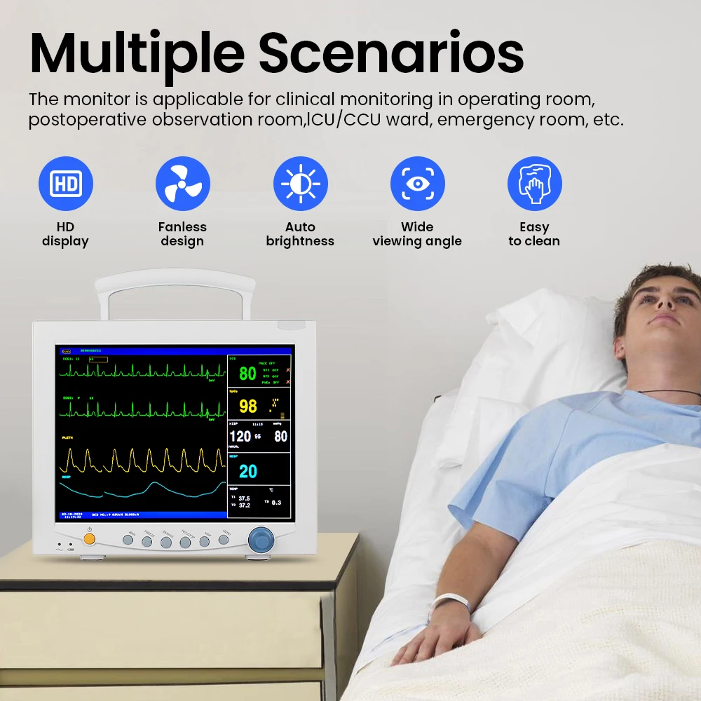 12.1" dotek obrazovka pacient podstatný známky monitor opatření ekg, respiration, NIBP, spo2, teplota ( IBP & CO2 options)