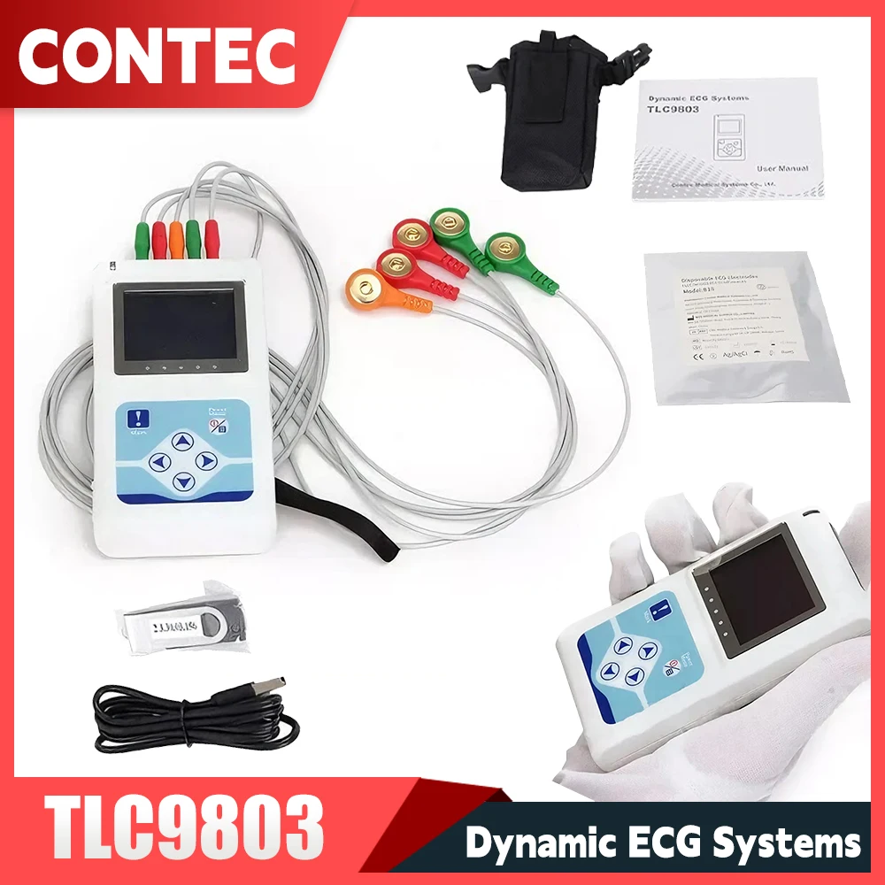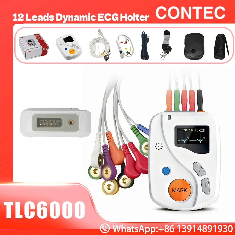 CONTEC TLC6000 12-lead dynamické holter ekg - 48-hour pacient monitoring 2gb karta USB PC softwarový přenosné EKG systém
