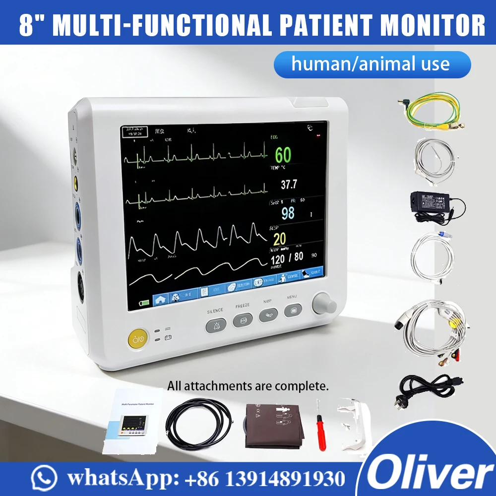 8" 6-parameter podstatný známky monitor ECG/NIBP/PR/SPO2/RESP/TEMP přenosné pacient monitor dvojí použít pro člověk & veterinární klinika